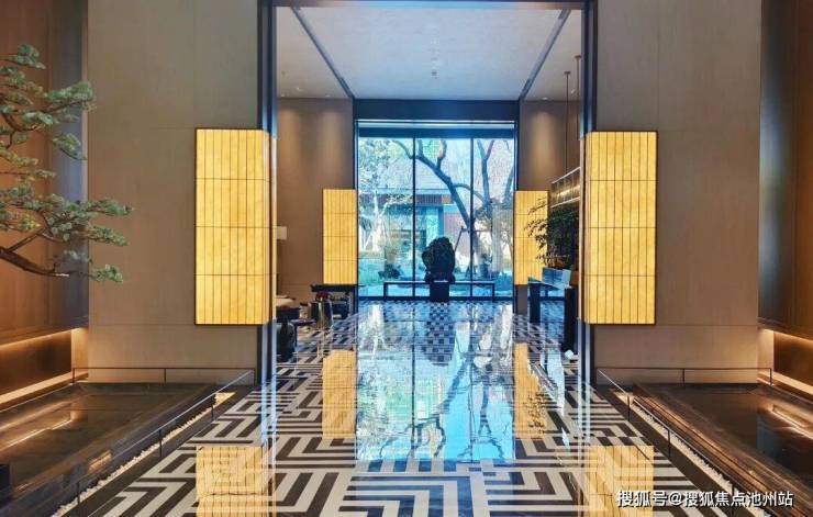 建筑立面采用南向铝板+LOW-E玻璃,搭配香槟金色金属线条,整体轻盈现代,充满镜面艺术感。