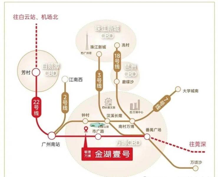 项目交通条件:项目距离地铁22号线市广路站约900米,1站番禺广场、2站万博中心,3站琶洲CBD、4站珠江新城。目前22号线只开通了陈头岗到番禺广场的路段,乘坐22号线可一站到广州南,或者1站到番禺广场换乘3/18号线,去珠江新城或者琶洲都很方便。项目旁边规划配建公交首末站,门前约200米敏捷集团公交站,8条公交线路便捷出行。自驾的话,项目出门就是市广路,周边还有广台高速、汉溪大道、新光快速等干线,出行非常方便,从小区开车去万博CBD仅3公里的距离,不堵车的话走福翠路接驳汉溪大道10分钟内即可抵达那边。