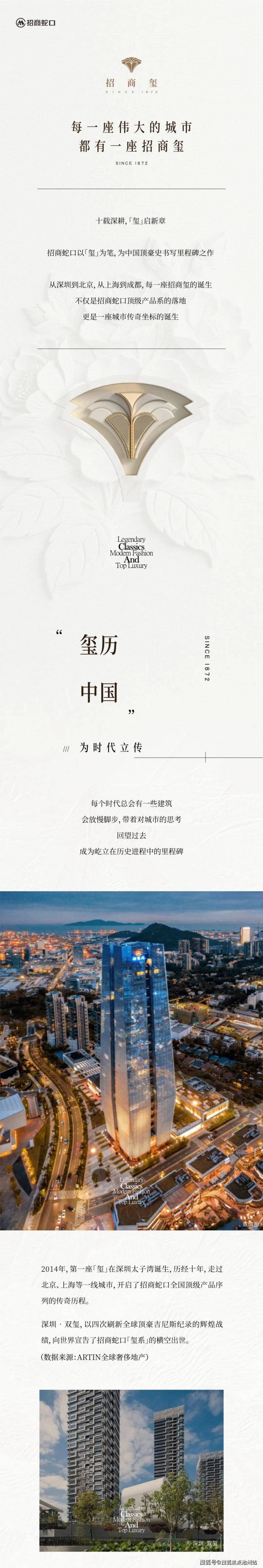 玺,百年招商旗下顶级居住品牌,始创于2014年,秉持“一玺一高定,一座一传奇”的理念,专注于为国家核心城市打造顶级居住作品。十年沉淀,从深圳到北京,再到上海,玺以严苛的择址观、高定的产品观,始终站在中国居住的金字塔尖,每一座玺,皆由一线设计大师执笔,成为超越当下的定制级藏品。