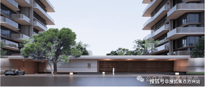 ·【千帆归港温润立面美学】通过错落有致的石材面与曲线的组合,在刚与柔的对话中构筑起兼具雕塑感与灵动感的立面形象,对节点的细腻刻画,体现一种温润典雅的立面美学;