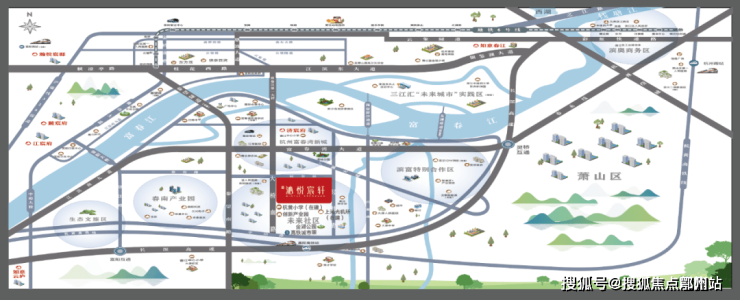 沁悦宸轩的周边,本就聚集了富春湾新城最核心的城市资源。