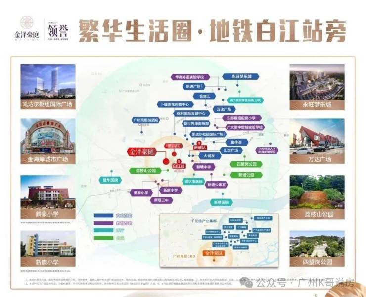 项目直线距离13号线白江地铁站仅700米,步行8分钟可达,由白江站乘坐13号线,2站黄埔,8站天河。
