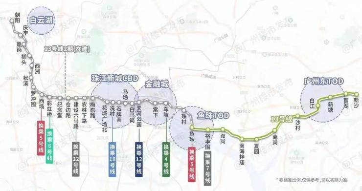 目前在建13号二期横跨黄埔天河越秀荔湾和白云五大主城区,比肩3号线黄金动脉,开通后无须换乘,一轨直达珠江新城(花城广场北站),尽享主城繁华。