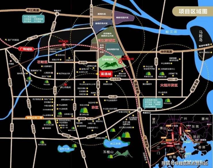 2.全优配套 便捷醇熟城央生活◎ 项目位于中山最有历史与最有价值的两条路交汇处(长江路与孙文东路)。政府斥资20亿改造的长江路,主线双向8车道,全线无红绿灯,约8分钟即可贯穿整条长江路。通过"孙中隧道”可直达富逸城商业车库,尊享无缝对接◎ 约15分钟到达中山港码头,约5分钟到达深中通道城区出口,约5分钟到达广珠城轨站--中山站。