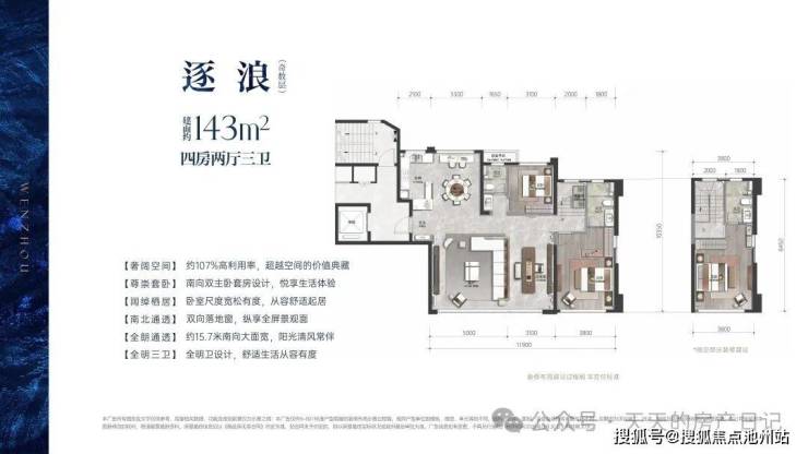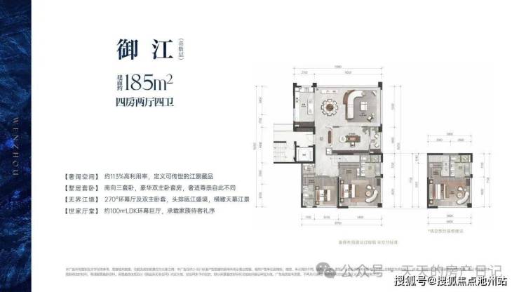 小高层:建面约 125-143㎡(4 室 2 厅 3 卫)高层:建面约 143-185㎡(4 室 2 厅 4 卫)