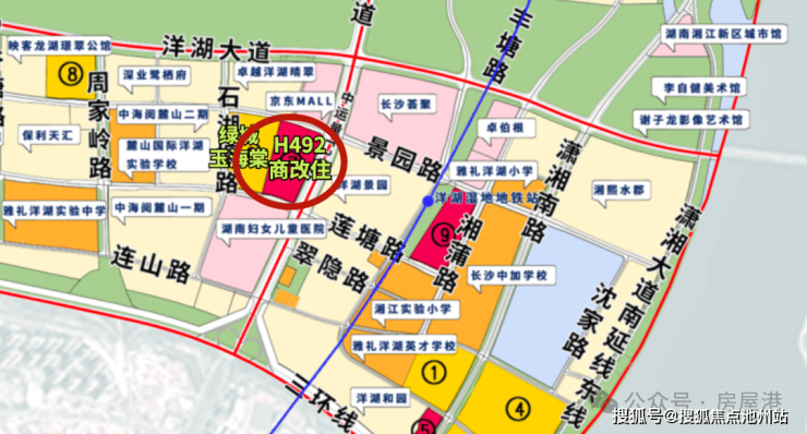 地块所处地理位置非常好,景园路与潭州大道交汇处西南角,距离洋湖湿地公园约300米,妥妥的洋湖正芯,距离地铁3号线洋湖湿地站约400米,这也是洋湖新城近地铁的最后一个住宅项目。