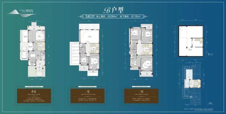 B户型:总建面418㎡(地上288㎡,地下130㎡)