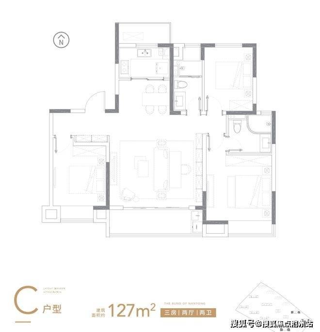 C户型127㎡三房两厅两卫