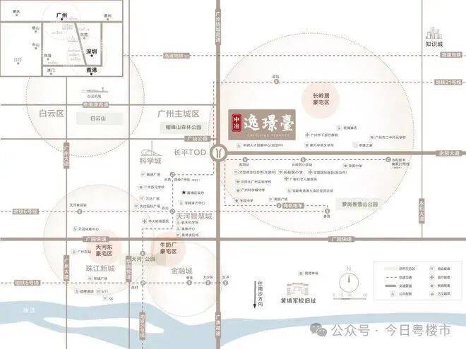 中冶逸璟台处于广州市主城区黄埔区长岭新城板块,长岭新城板块位于广州科学城东边、萝岗中心区东北边,依山傍水,为广州市政府重点发展区。