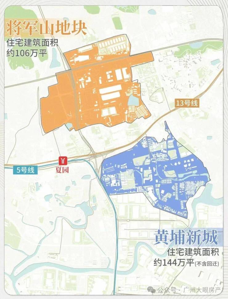 作为一个能叫“城”的楼盘,最显著的特点就是:大,将军山地块体量达到106万平,接近3/4个黄埔新城,达到1平方公里,规模相当于约3个猎德村(约31万㎡)旧改。