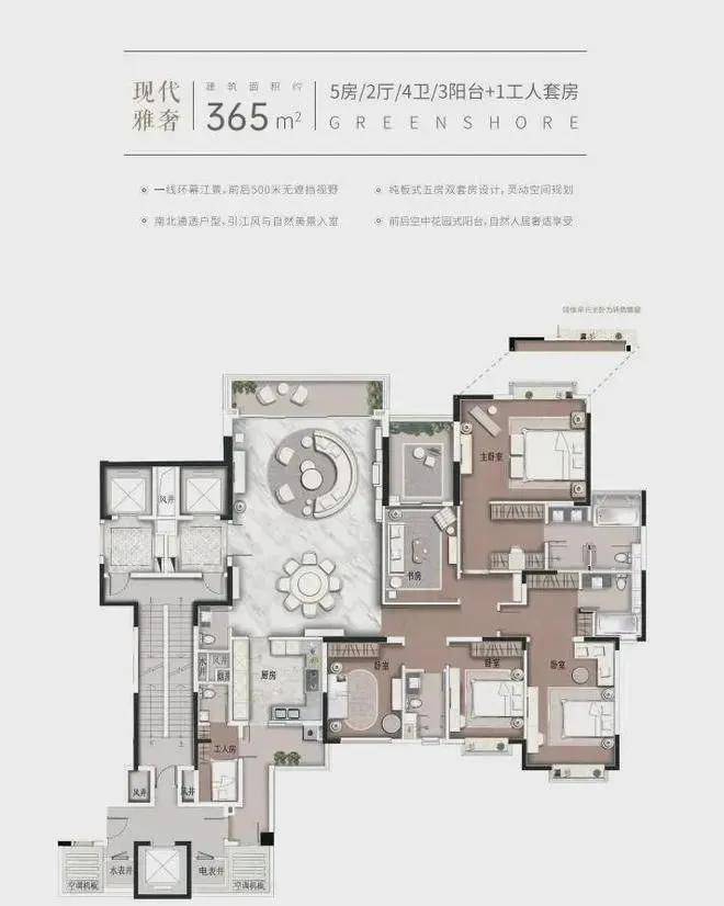 约365㎡5房双套房|2厅|4卫|3阳台+1工人套房