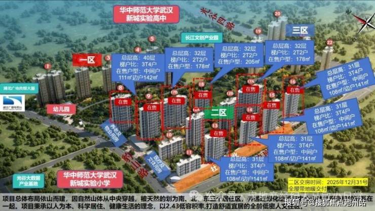 西边是小学、南面是初中、北面就是高中,长江广电光谷家简直是被华师系小学、初中、高中包围,且距离非常近!