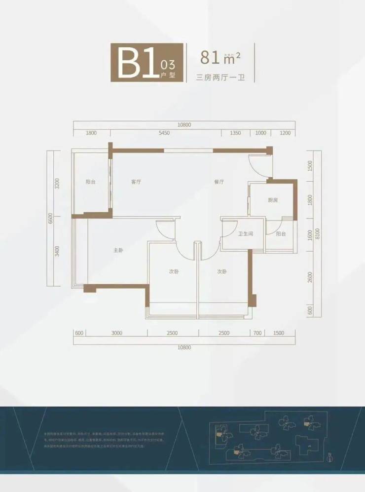 该户型朝西,次卧朝南,也是双阳台设计,整体布局与65㎡相似,是65㎡的加大版(多一个房间)