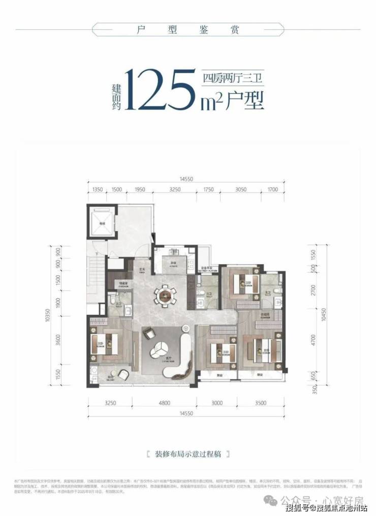 【主力户型】:小高建筑面积约125-143㎡,高层建筑面积约143-185㎡。