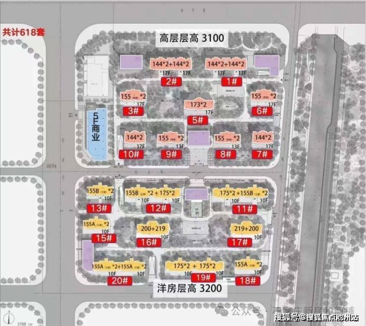 楼层状况:项目共计18栋住宅楼,其中7栋17层小高层,2栋13层小高层,9栋10层洋房