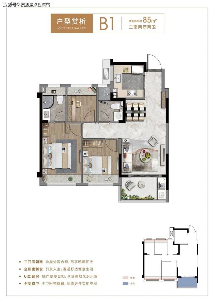 瞰景高层 / 73㎡二房一卫,85㎡、99㎡三房二卫