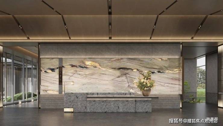 “ 墙角数枝梅,凌寒独自开 ” 。项目的设计师在会所一面景墙上,点缀上 “ 发光 ” 的梅花。梅花的花瓣,是一片片雕刻而成,填入树脂达到发光的效果。 盛开的梅花,寓意吉祥。