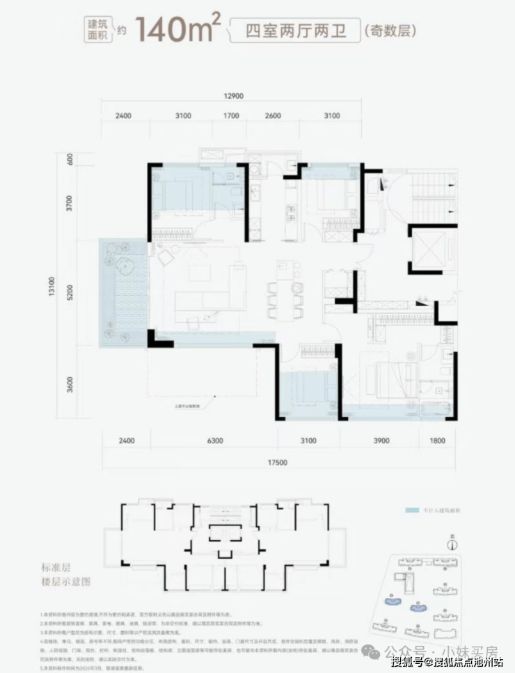共包含3个户型(奇数层与偶数层算同一个),分别是100、120、140平,来看看具体户型图