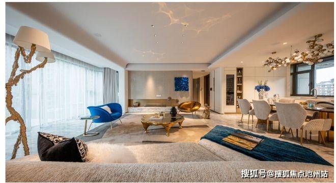 东胜·天御 168-300 ㎡环幕大平层,23 米超大面宽视野尺度户型,270°环幕视野,透过大面积的窗,将满园葱翠与蓝天白云尽收眼底,约 7.5 米无界宽厅的全落地玻璃,让阳台与客厅的界限自然消隐。
