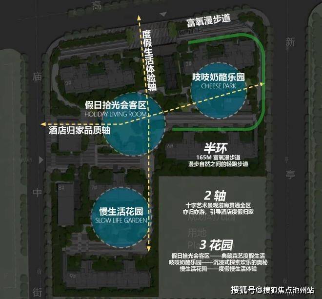 整个社区拿出超1/3的面积做绿化景观,景观面积超1.5万㎡,景观由上海罗朗景观设计团队倾力打造,绿化率约35%,以“森系度假 自然花园”为主题,以“半环-2轴-3花园”景观结构,满足各年龄层业主的需求。
