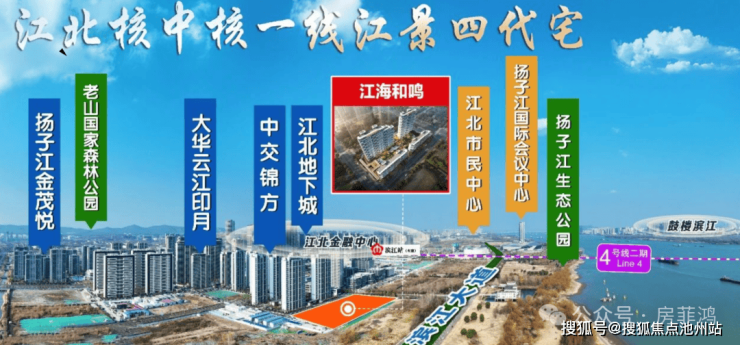 江海和鸣位于江北核中核板块,不远处就是江北市民中心和扬子江国际会议中心,占据烫金地段。楼盘正对长江和扬子江生态公园,距离长江岸线约300米,坐拥一线江景资源。