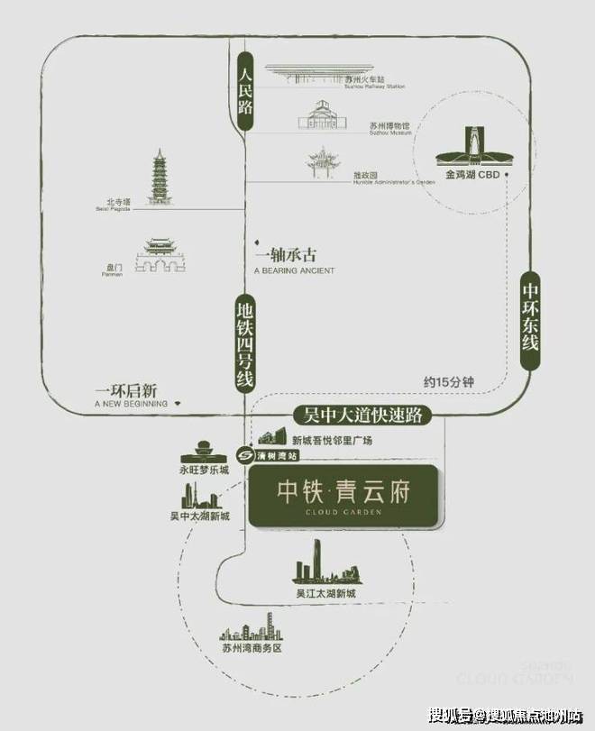 ◎速度先锋——中环线,串联全域枢纽,约15分钟速达姑苏主城、狮山核心区、金鸡湖CBD,以立体路网焕新通勤效率,勾画“半小时全城生活场”。