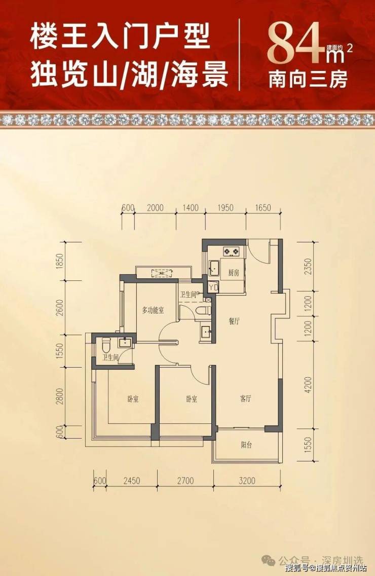 约84㎡玖玺3房2卫最低上车门槛,稀缺南向,看山景,湖景,海景