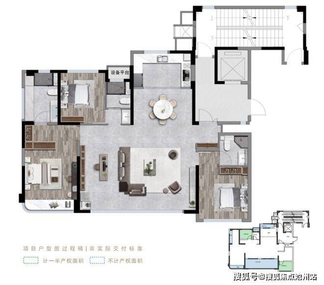 此外,两梯两户创造出约10㎡的独立电梯厅可被视为空间拓展,且得益于第四代住宅的产品优势,该户型拥有包括飘窗、空中花园、设备阳台、开敞阳台等大量面积赠送,其空间体验与滨江CBD建面约170㎡大平层几乎没有区别!