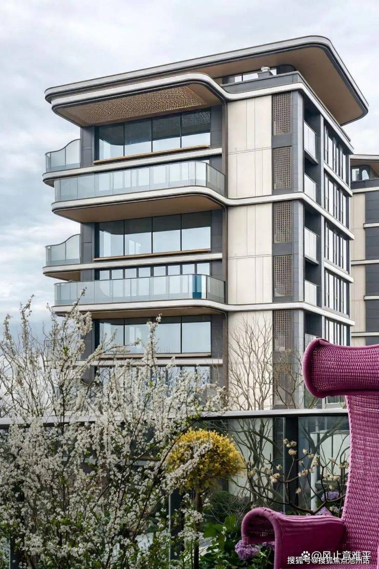 立面精选仿铜色铝板,经过7道阳极氧化工艺处理,在保留金属质感的同时,呈现出玉石般的温润光泽。这种“暖色系科技材料”的运用,既规避了玻璃幕墙的冰冷感,又解决了传统石材的维护难题。更巧妙的是,设计师在阳台外侧植入磨砂玻璃屏风,既保证私密性,又让立面在昼夜交替间演绎光线的变奏曲。