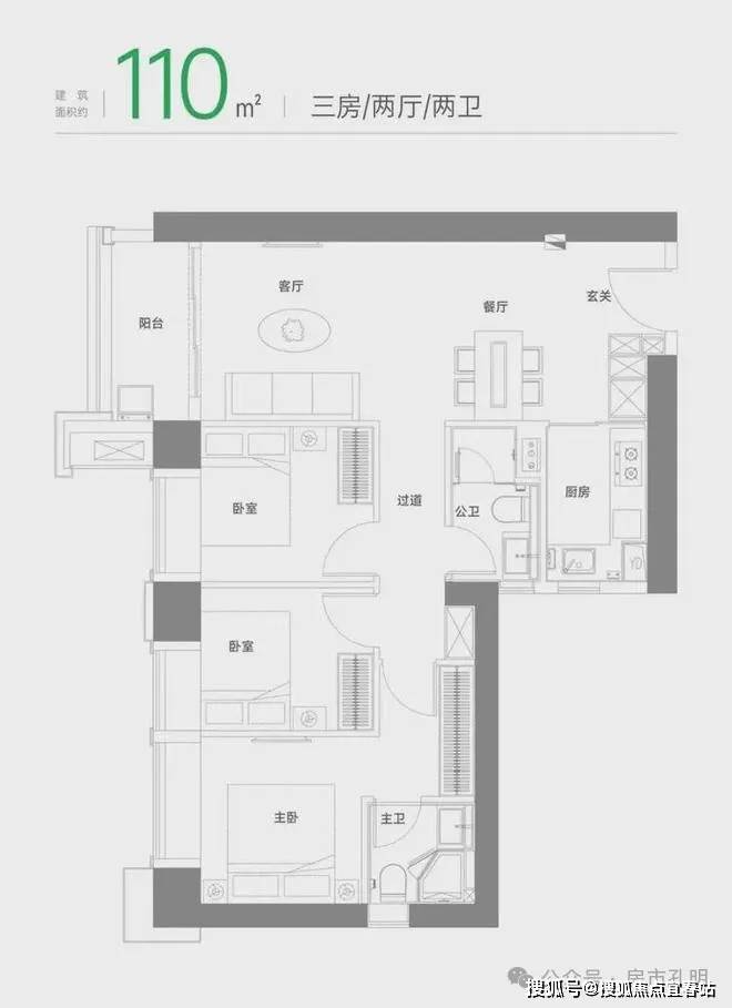 卧室标配飘窗,引入丰沛阳光,全家尽情舒展餐客一体贯通阳台,打造舒适、宽敞的欢聚天地奢享主卧,独享衣帽间、私人卫浴,自我非凡领地