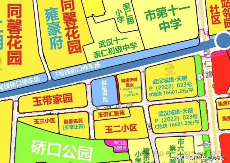 武汉城建天樾位于硚口区崇仁路与京汉大道交汇处,武汉城建天樾B、C地块是2022年出让的P(2022)023号地块,由武汉地产集团有限责任公司(武汉城建集团)底价竞得成交楼面价约16601.2元/平,这个价格不算便宜啊。毕竟2022年地产行情还不错。成交总价约334680万元。目前开发公司为武汉城建天樾置业有限公司,是武汉市属国企。该B、C地块分二期开发中间市政道路隔开。