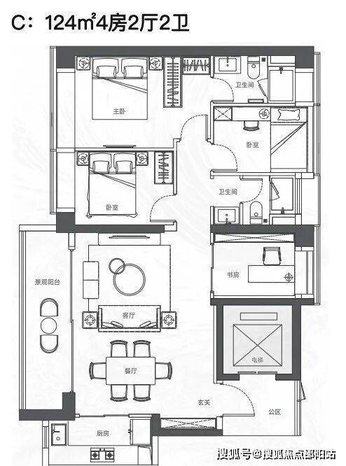 该项目将推出大约380套住宅,建筑规划包括2栋塔楼,其中高区采用4梯4户的设计,低区则为5梯5户,确保了每户都能享有独立电梯厅的配置。