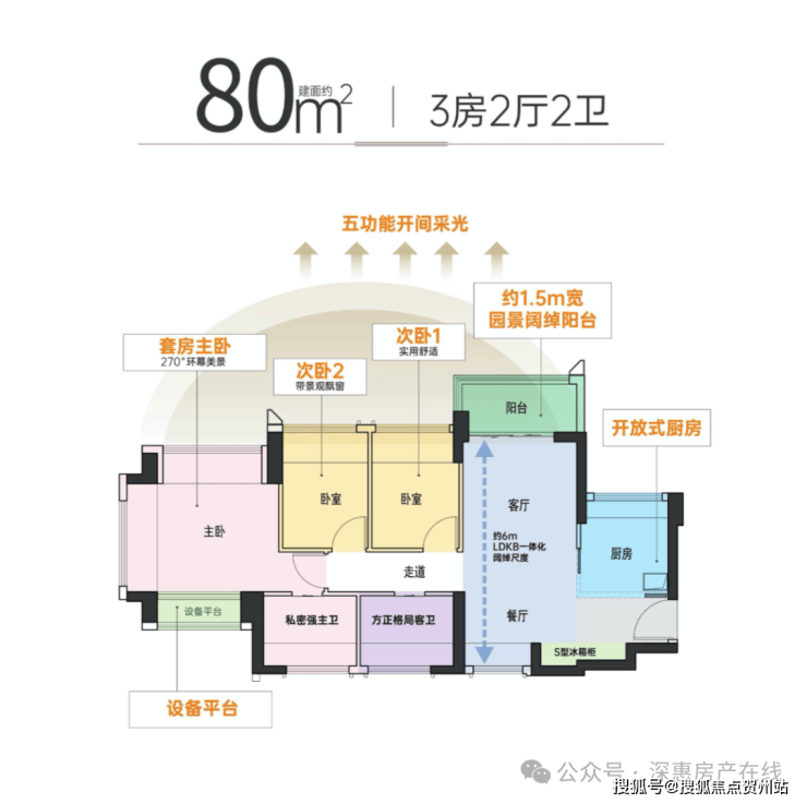 4开间约12m,全东南向采光,视野开阔,大套房主卧180度环幕采光景观,S型墙体设计冰箱位,使用空间利用更合理,客餐厅一体化设计,空间利用更高效,家人间互动交流感更强。