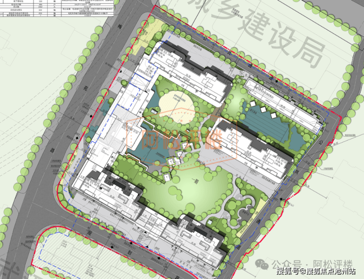 项目园林规划比较有特色,社区景观园林内规划有下沉庭院、室外体育运动场、露天泳池等,地块不大,但园林及功能比较丰富。