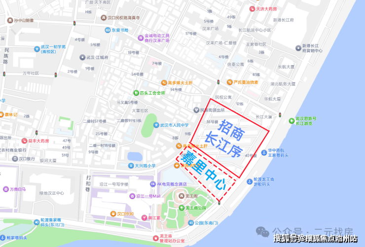 招商长江序位于江汉区龙王庙公园东侧,和嘉里中心挨在一起,属于汉口内环的好地段。