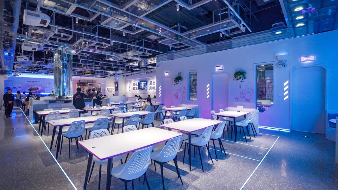 除了这些看得见的技术,整个餐厅在看不见的地方还有智慧支撑体系,比如客户服务系统和机器人设备调度系统来支持运行。