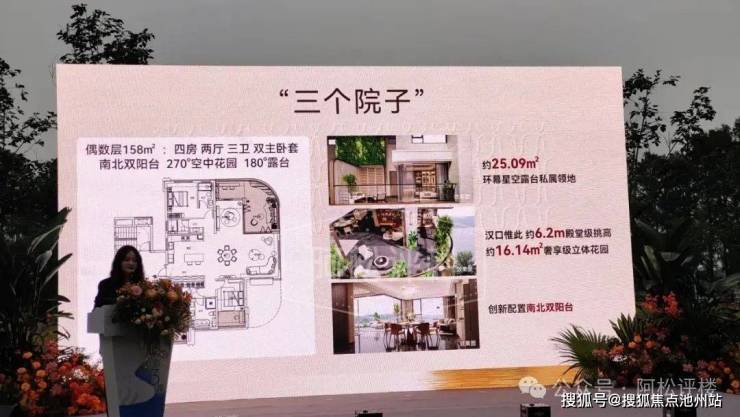 该户型不仅南北通透,三面采光,还设计了双主卧,南北双阳台,并且带270°的空中花园+180°的露台,根据现场展示信息,最高实际得房率高达126%。(得房率数据来源于发布会现场PPT,本文无法核实准确性,请以实际为准)
