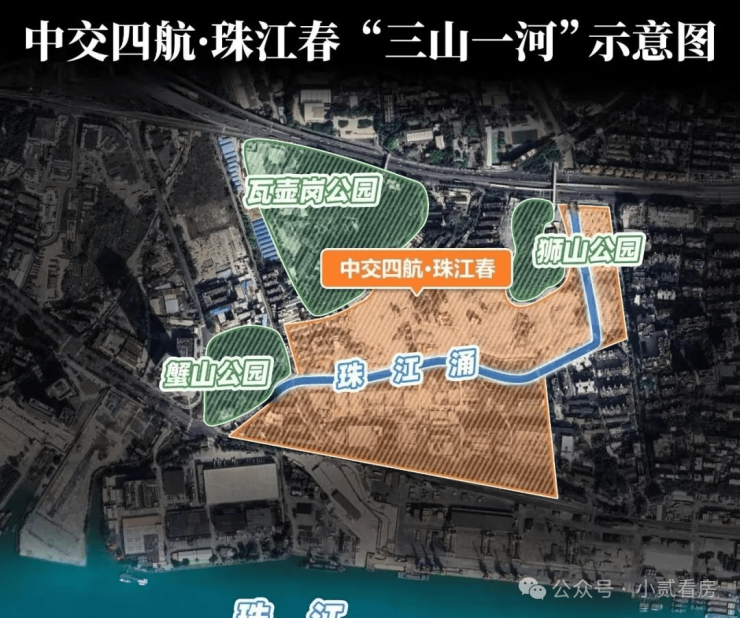 形成一个“三山一水”的自然景观格局,相当于做到内有河涌滨水园林,外有公园、山景与江景的立体生态。