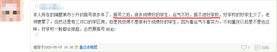 也有的网友为成绩好的孩子抱不平,认为摇号就代表着凭运气而不是拼实力。这一点可能代表了一部分成绩好的学生家长的观念。