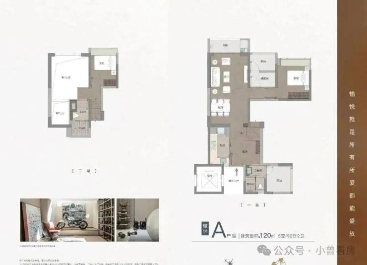 相比之下,项目的复式产品整体没有平层产品方正,比如下面这个120㎡的户型: