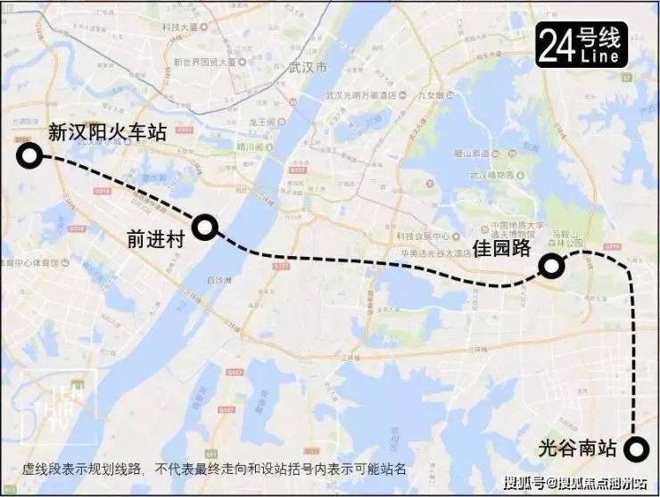 此外,项目所在的前进村站,还远期规划了地铁24号线,根据规划,该线路向西可连接新汉阳火车站,向东直达洪山、光谷片区。(备注:该线路为远期规划,具体开工时间和站点位置暂未确定,下图仅供示意)