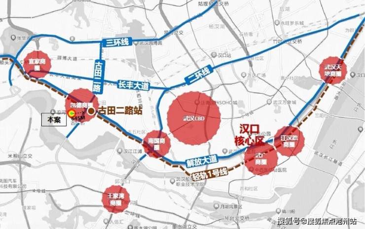 核芯区位 项目雄踞古田路与古调路交汇处,3公里范围内覆盖5大地铁站(古田一路/二路/三路、舵落口、汉西一路),直线距离1.5km即达武汉市第四医院(古田院区)。作为汉江湾重点发展区,周边13大公园环伺,1.1公里直达汉江湾全民健身中心(2025年底开放业主专享优惠)。
