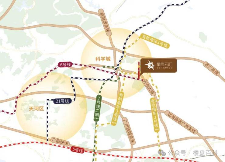 地铁——地铁6号线香雪站上盖,连通地铁7号线、21号线,速达珠江新城;有轨电车1号线、2号线、3号线香雪站始末站距离项目100米;