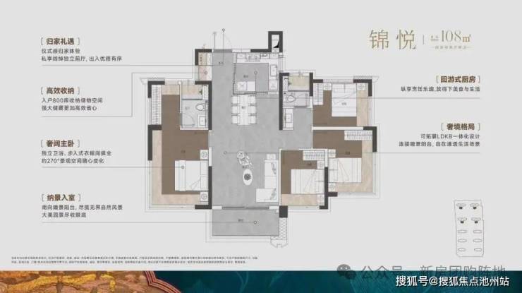108㎡刚需三房:采用凸出的 “飞机户型”,区别于传统四叶草设计,主卧与 3 个次卧分区布局,减少家人间的相互干扰,私密性更优。