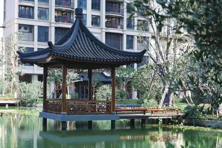 星河湾的水系园林中,每一棵植物,都考虑到了它们10年以后的生长,走进星河湾的园林,中式建筑、亭台水榭、蜿蜒水系.......每一帧都美得像画卷。