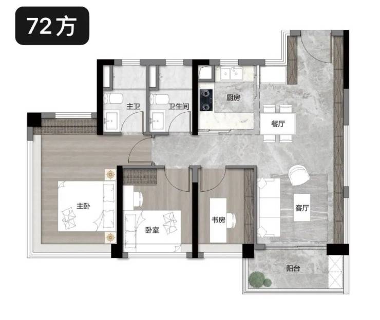 【约72㎡ 3空间2卫】