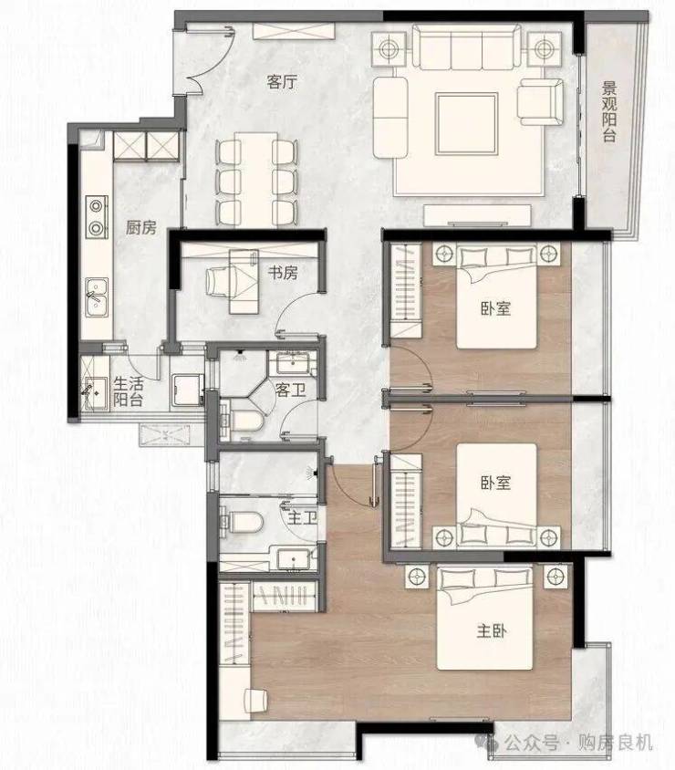 顶尖设计团队,打造标杆奢宅。立足精品住宅开发,匠造建面约69-144m²臻美二至四房,户户双阳台,LDK一体设计,东南向望江赏景,精品户型造就理想生活。