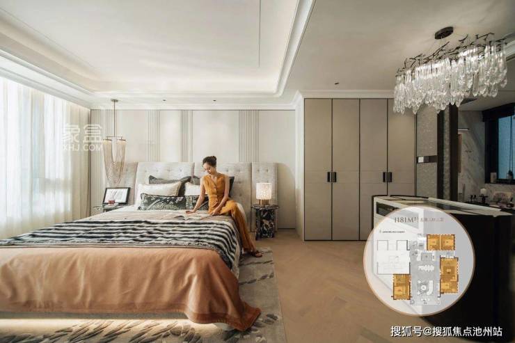 建面约181㎡产品打造出“类三套卧”的起居格局。约29㎡全景主卧套房,对标星级酒店总统套房的空间格局,南向全景落地窗/飘窗,步入式衣帽间,独立卫浴空间,一气呵成的洄游动线设计,让主人家晨起梳妆、沐浴更衣优雅流畅。