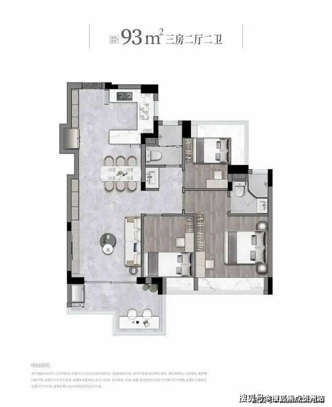 户型多样:项目推售的户型包括85㎡三房一卫、94㎡三房两卫、96㎡三房两卫以及110㎡四房两卫等多种选择,满足不同购房者的需求。