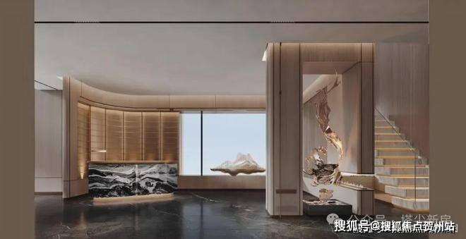 归家礼序:三重尊奢归家,主入口前设置迎宾广场,台地式建筑拾级而上,入社区后景致相依,酒店式的归家奢华大堂,营造归家尊崇仪式感。